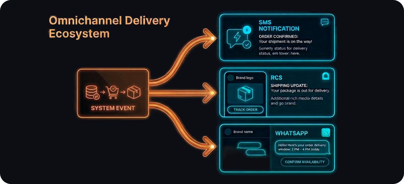 The most common starting point is transactional messaging: order confirmed, shipped, delivered. These are the right place to begin because the trigger is unambiguous (something happened in your system) and the customer expectation is clear (tell me about it).